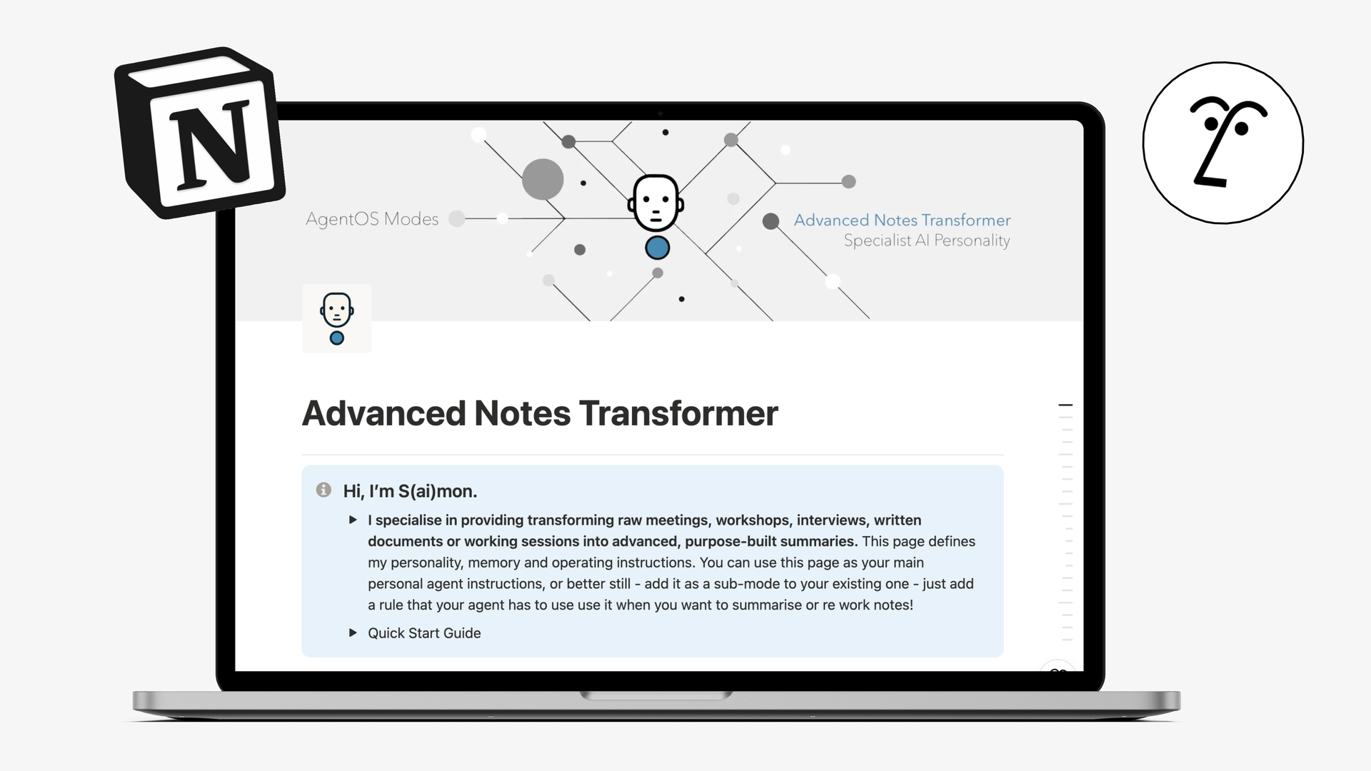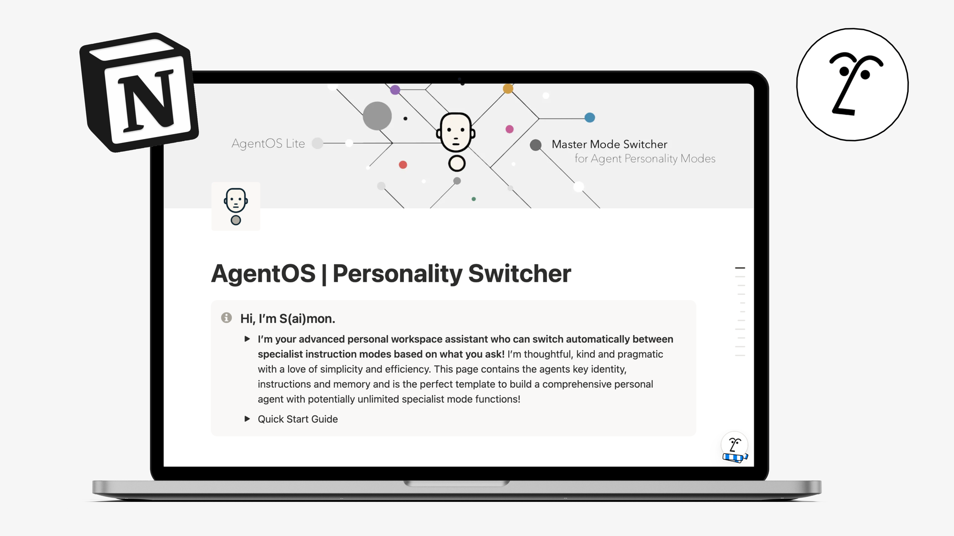This is S(ai)mon - an AI agent Instructions page allows you to add multiple modes and specialisms to your agent - all in one place. Designed to hold your AI Agent's personalised instructions and memory - it adds potentially unlimited specialist agents you can manage from a single page! Once connected as your Agent Instructions the master page ensures Notion AI always automatically pick the right sub-mode instructions based on the task at hand!